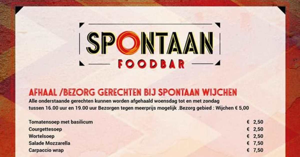 Woensdag t/m zondag lekkerste Spontaan-gerechten afhalen!
