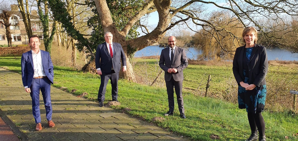 Het nieuwe bestuur van de Groene Metropoolregio Arnhem-Nijmegen en de voormalig voorzitter van de regio Arnhem-Nijmegen.