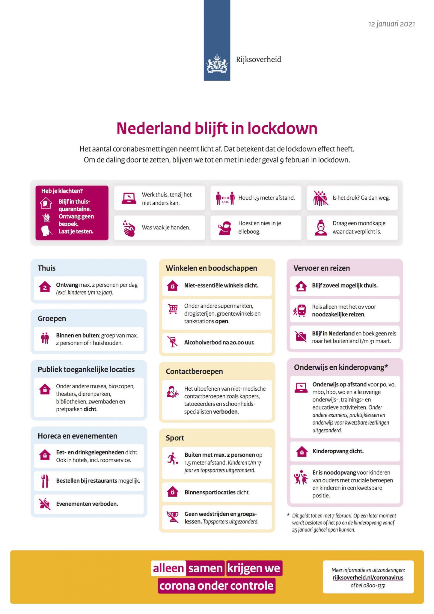 Tot en met ten minste 9 februari 2021 blijft de situatie zoals hij nu is: