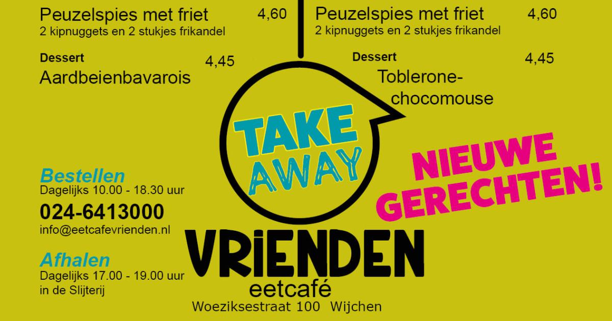 Eetcafé Vrienden: “Afhalen van TakeAway gerechten en ook geopend voor kerstcadeau!”