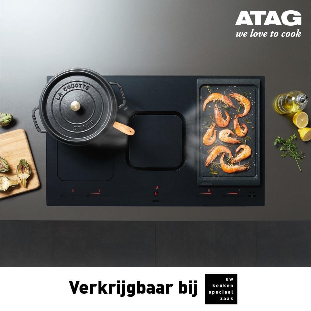 De ATAG Hood-in-hob, oftewel de inductiekookplaat met geïntegreerde afzuiging, geeft een nieuwe dimensie aan de keuken. Omdat de afzuiging geïntegreerd is in de kookplaat is er geen afzuigkap nodig. Hierdoor krijgt u vrij zicht in de keuken wat een ruimtelijke sfeer creëert. Deze ATAG inductiekookplaat onderscheidt zich ook in het gebruik. De bediening voor de kookplaat én de afzuiging hebben ieder een eigen
