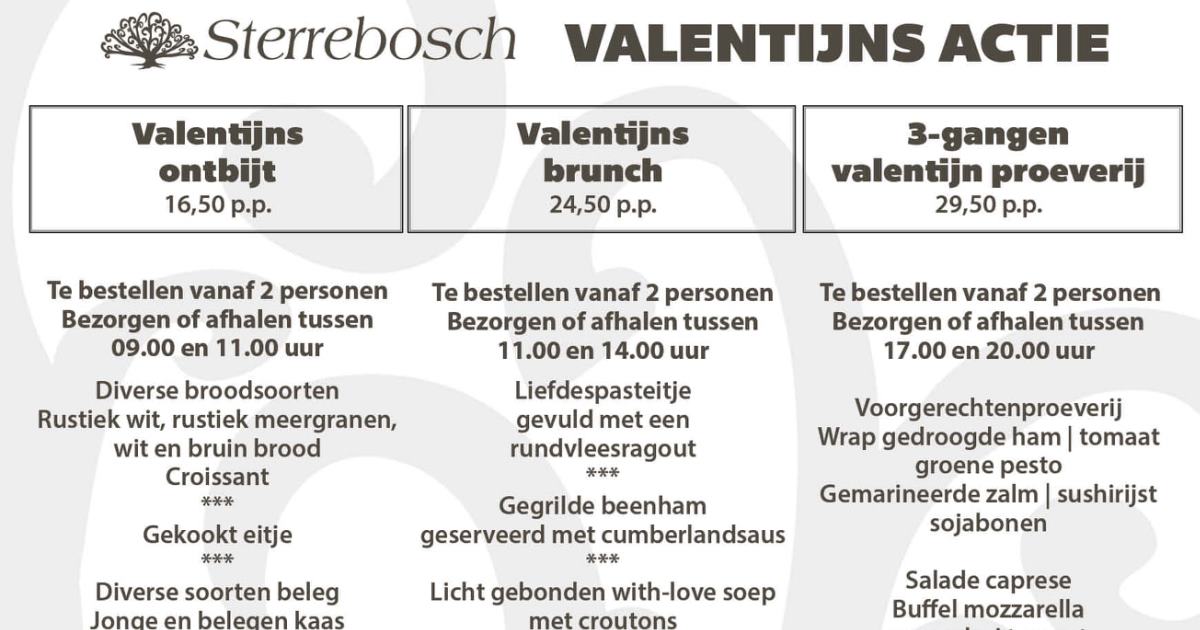 Bestel het Sterrebosch Valentijns -ontbijt, -brunch of -diner en maak kans op een overnachting in onze Bruidssuite!!