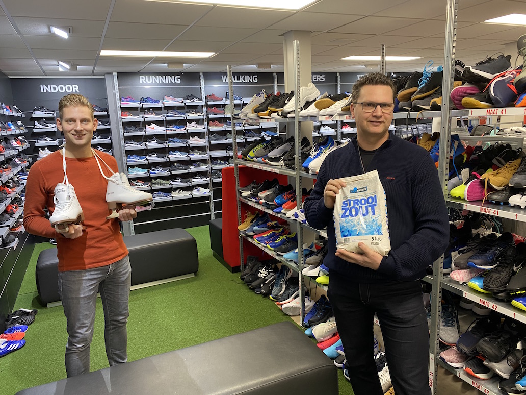 (Hierover snel meer - red.). Ook zijn we al klaar voor de kou die er nu aan komt. We zijn al druk met het slijpen van kunst- en ijshockeyschaatsen. Gelukkig kunnen onze klanten vanaf woensdag 10 februari voor onze winkel de producten komen ophalen!”