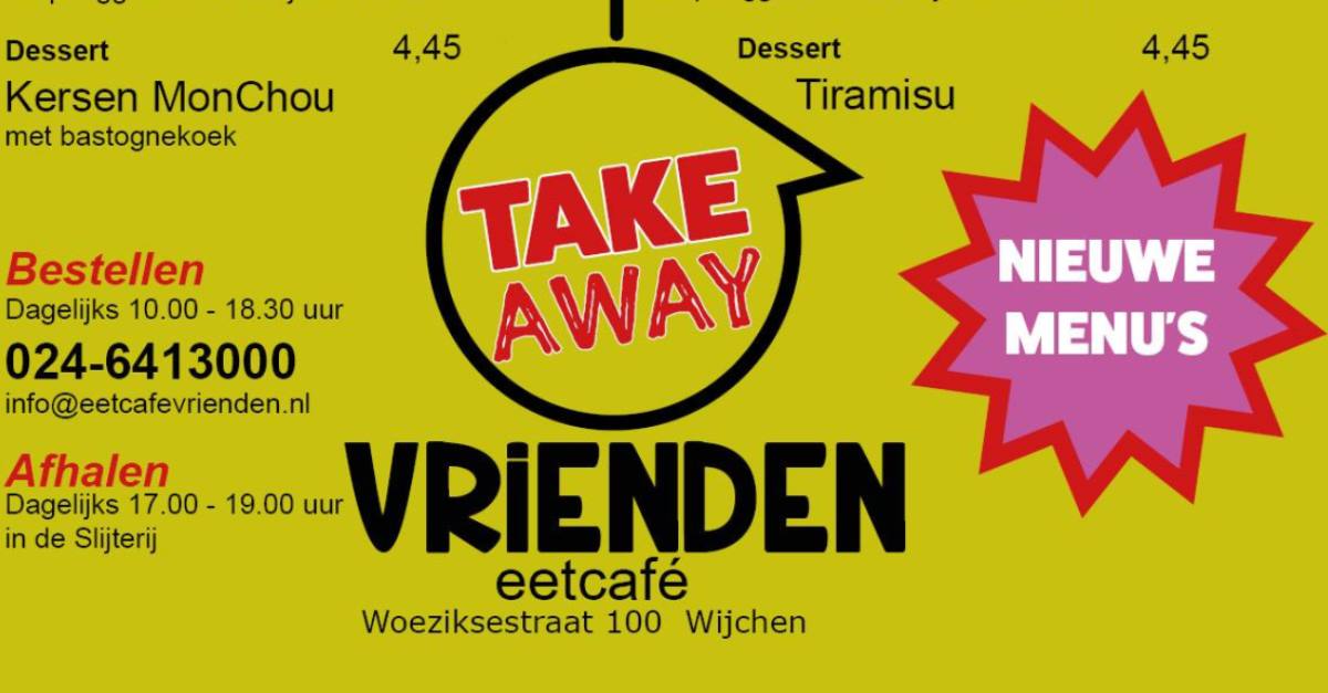 Eetcafé Vrienden: “Afhalen van TakeAway gerechten en ook geopend voor kerstcadeau!”