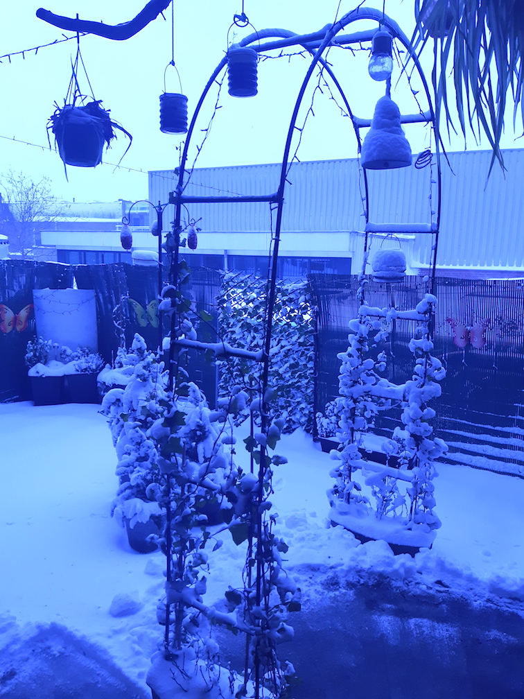 Ook Henry van den Berg ontwaakte in een witte wonderwereld.