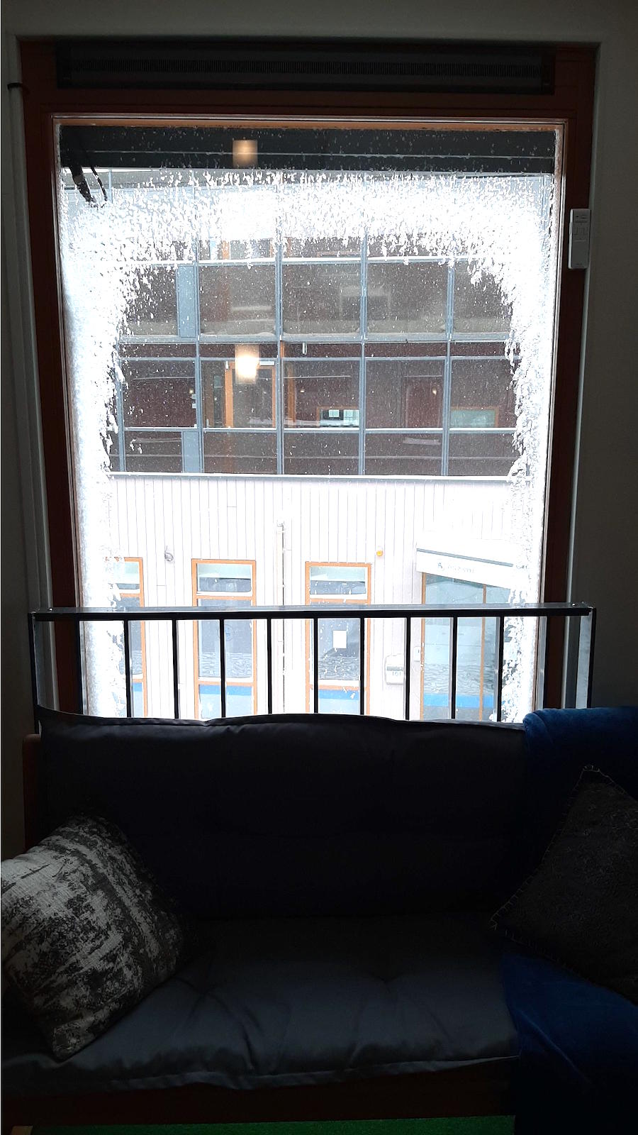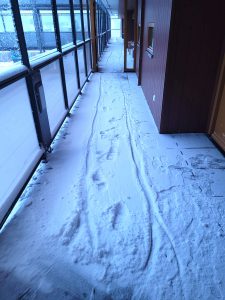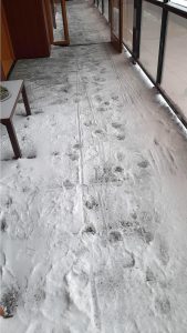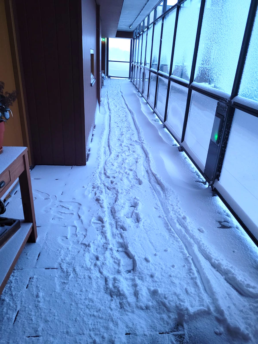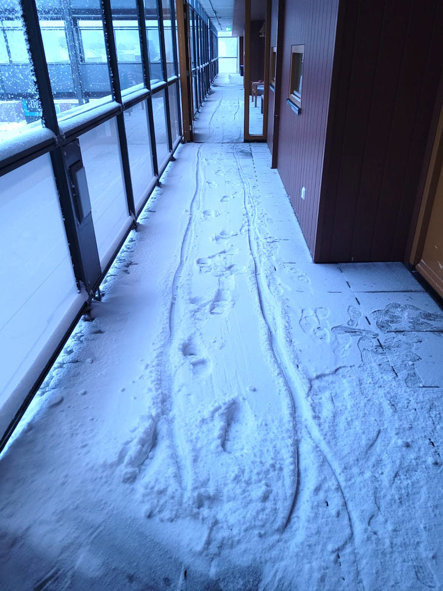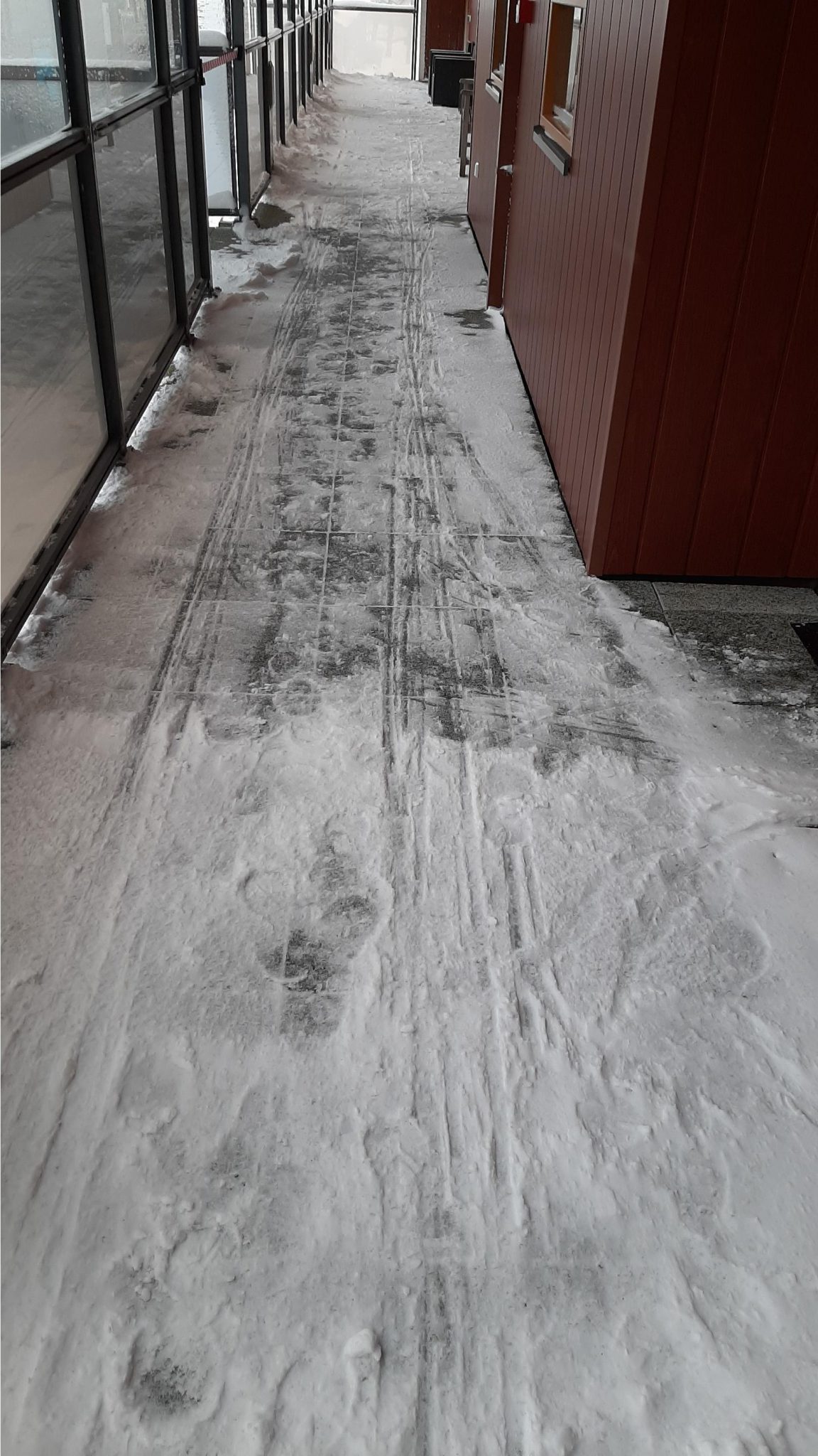 Vanmorgen met drie man 45 minuten bezig geweest op de balustrade om het sneeuwvrij te maken voor onze ouderen, voordat we met de zorg begonnen. Het sneeuwvrij maken heeft helaas geen zin..."