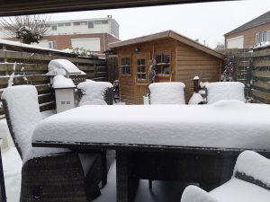 onze oproep om je leukste sneeuwfoto te mailen kregen we deze toegestuurd - compleet met grappige tekst: "Winter-BBQ 2021! De tafel is al gedekt, alleen krijgen we de BBQ niet aan..."