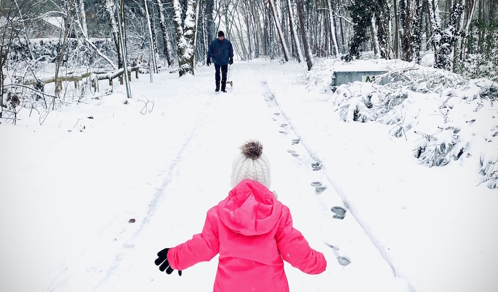Manon de Bruin stuurde ons deze schattige foto: "Hier een topfoto voor mij! Opa die zijn kleindochter met de slee komt ophalen, omdat ze niet in de sneeuw wil lopen." ❤️