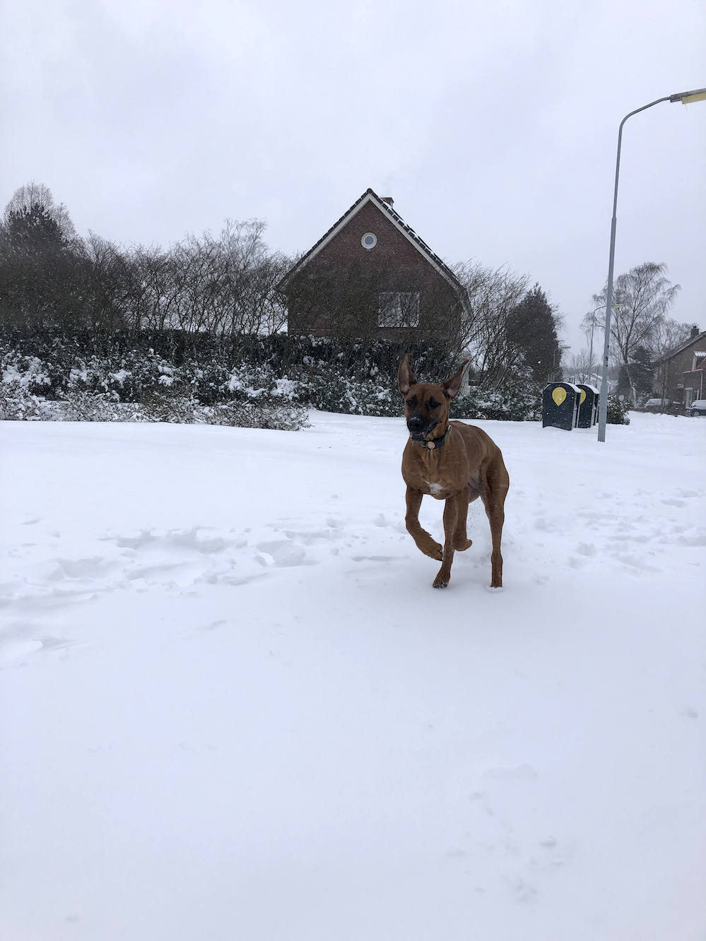 Jaimy Willems mailde ons, naar aanleiding van onze oproep: "Onze, bijna 6 maanden oude, hond Aissa geniet in de sneeuw. Zo erg aan het springen dat ze wel een beetje op een sneeuwkonijn lijkt ;) "
