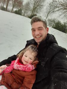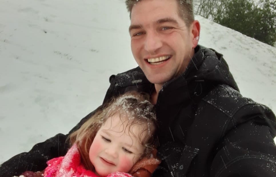 Saskia van Zachten fotografeerde twee lieverds in de sneeuw: "Janne samen met papa."