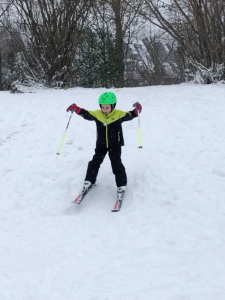 "Levi genietend op de ski’s - nu Oostenrijk niet kan: lekker in Wijchen!", schrijft Linsey Geesink ons.