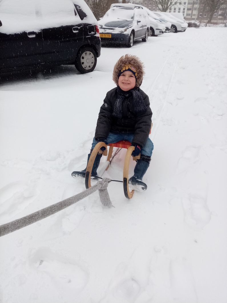 "Onze Mike van 4 jaar heerlijk sleetje rijden in de straat in Diepvoorde!" (Pamela van Susteren)