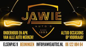 Al meer dan 39 jaar heeft het familiebedrijf met aan het hoofd Jackie Lijbers (Ja) en Wiellie Gerrits (Wie) ervaring in de autobranche. Jawie Auto’s is een begrip in de autowereld en doet de verkoop van alle merken auto’s (het bedrijf richt zich op het verkopen van jong gebruikte occasions in diverse prijsklassen) en zette vorig jaar met het APK Keuringstation Beuningen de kroon op haar werk.