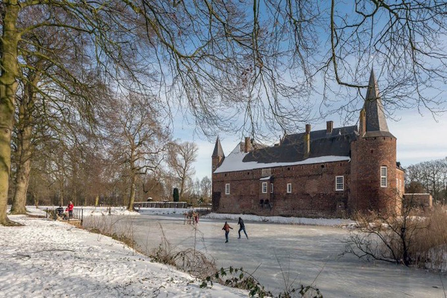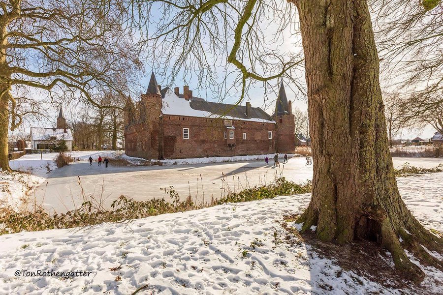 De mensen van Geldersch Landschap en Kasteelen (GLK) plaatsten op Twitter nog wat fijne sneeuw- en ijspretfoto's: "Nog een mooie dag op Hernen. Alle ruimte op de gracht rondom het kasteel. Heerlijk. Foto's zijn van Ton Rothengatter."