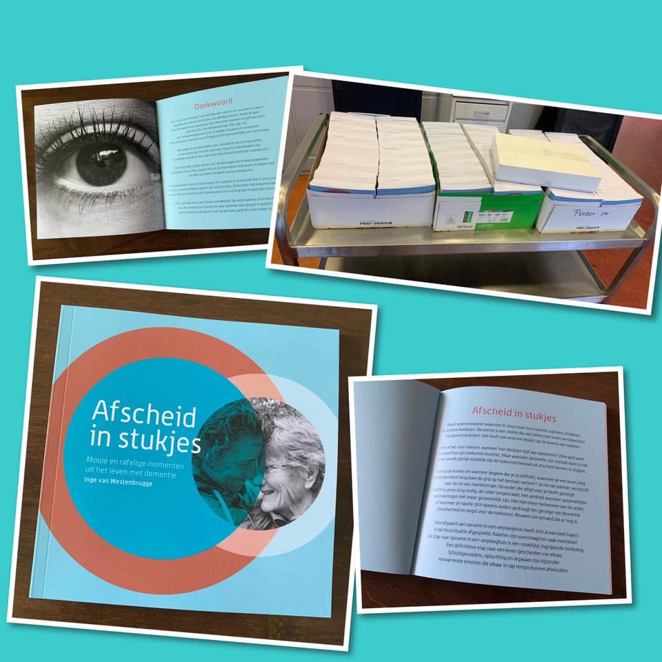 Een mooi twitterbericht van burgemeester Marijke van Beek van Wijchen: "Vandaag mocht ik een heel mooi boekje in ontvangst nemen, genaamd 'Afscheid in stukjes', met als ondertitel 'Mooie en rafelige momenten uit het leven met dementie', geschreven door Inge van Westenbrugge. Inge is verzorgende op De Weegbree, een dorp in een dorp, een niet meer weg te denken vluchthaven in Wijchen."
