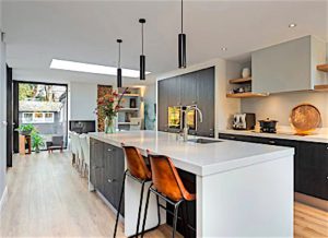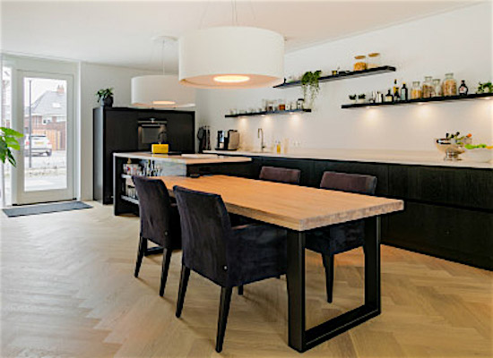 “Omdat het op die manier bijvoorbeeld makkelijker is om de kinderen te helpen met thuisscholing of omdat u afwisseling zoekt en de studeerkamer op zolder niet inspirerend genoeg vindt. Schuif aan aan het keukeneiland en prik de stekker in het stopcontact dat netjes verwerkt is in het werkblad.”