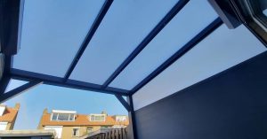 Het Wijchense bedrijf Verandamakers dat gespecialiseerd is in veranda’s, overkappingen en tuinkamers heeft opnieuw een prima product gemaakt. Ze laten trots weten: “In Wijchen hebben we onlangs deze veranda met aluminium zijwand geplaatst. Om het geheel iets speelser te maken hebben we schoren tussen de goot en de palen gemaakt.”