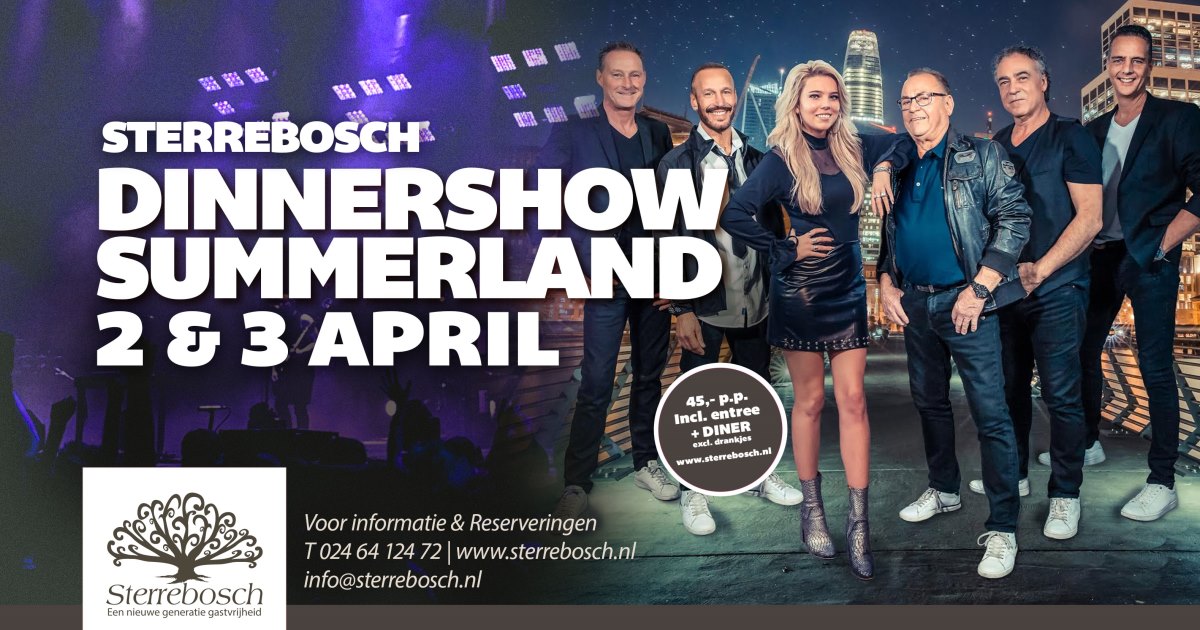 Dinner Show met Summerland vrijdag 2 april en zaterdag 3 april Sterrebosch!