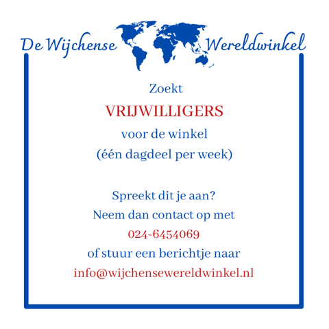 Wereldwinkel Wijchen zoekt vrijwilligers
