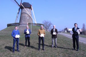 Van links naar rechts: St. Leergeld 2-Stromenland, Vincentiusvereniging Wijchen, Diaconie Rivierenland-Oost sectie Wijchen, PCI Caritas Wijchen en wethouder Nick Derks gemeente Wijchen.
