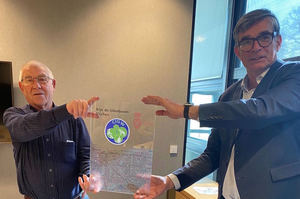Woensdag 31 maart ontving Paul Loermans uit handen van Henk Hermsen een toegankelijkheidskeurmerk voor de opgeknapte wijk Uilenboom. Meneer Hermsen is van de werkgroep BTB, onderdeel van de gehandicaptenraad Cliëntenraad Integraal Gehandicaptenbeleid Wijchen (CIGW). BTB staat voor Bereikbaar, Toegankelijk en Bruikbaar. De sticker die de werkgroep normaal op het raam van een gebouw plakt bij wijze van keurmerk, plakten zij nu op de plattegrond van de wijk.