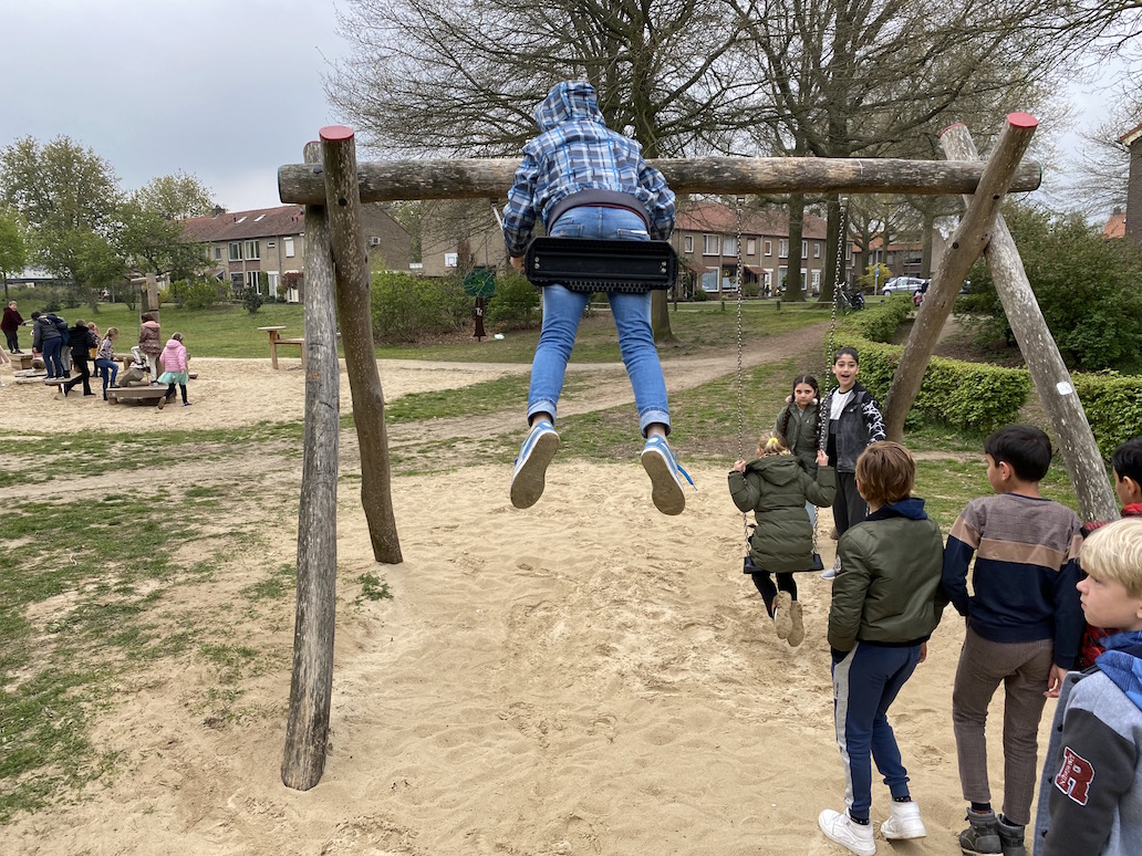 Het is een leuke, uitdagende speelplek geworden zoals u ziet, waar ook kinderen met een beperking kunnen spelen en ouders elkaar kunnen ontmoeten.