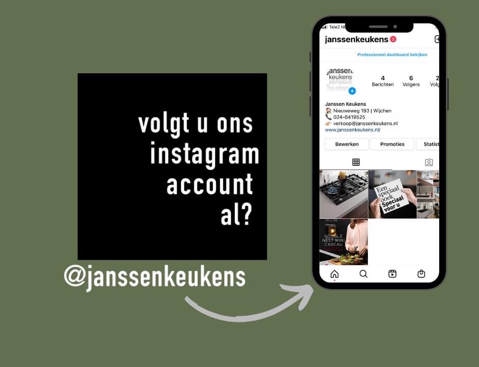“Sinds kort zijn wij ook te vinden op Instagram, voor nog meer fotoplezier! De mooiste keukens en hipste keukentrends ziet u daar voorbij komen”, laat Janssen Keukens aan de Nieuweweg in Wijchen weten.