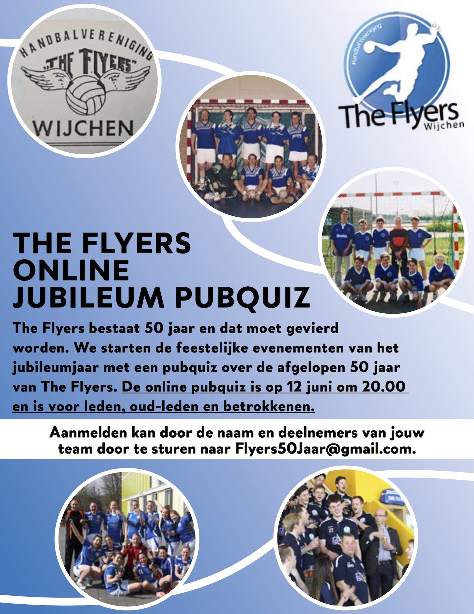 De Wijchense handbalvereniging The Flyers bestaat dit jaar 50 jaar en dit gaat uiteraard groots aangepakt worden: "We starten de feestelijke evenementen van het jubileumjaar met een pubquiz over de afgelopen 50 jaar van The Flyers. De online pubquiz is op
