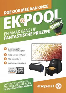 Eindelijk is het zover. Het EK staat voor de deur. En wat is er leuker dan hier samen van te genieten. Daarom kunt u bij Expert Wijchen meedoen met een Expert EK-pool. Dit kan individueel, maar ook per team of zelfs met de hele club. En hoe u ook meespeelt, iedereen die meedoet maakt kans op mooie prijzen.