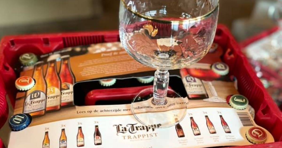 Leuk vaderdag kado van Café Zus La trappe bieren in krat met glas!