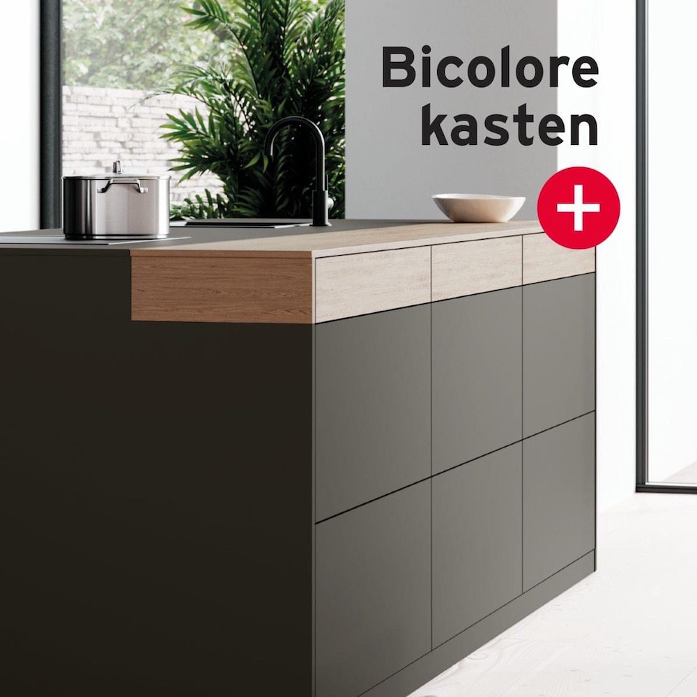“Voor wie niet van één kleur houdt, hebben we een serie ‘Bicolore’ kasten opgenomen in onze keukencollectie”, laten de keukenspecialisten aan de Woonboulevard XXL weten. “De fronten van de laden kunnen worden voorzien van een andere frontkleur. Hiermee creëer je een contrasterende of juist harmoniërende lijn in je keuken. Ook is het mogelijk het werkblad of een afdekpaneel mee te nemen in de kleur van het Bicolore front. Er is een groot aantal mogelijkheden.” Bekijkt u ook zeker de website van dé Gelderse keukenspecialist