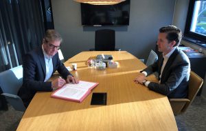(rechts op de foto): “Ik ben erg blij met het brede draagvlak bij de pandeigenaren. Hierdoor ontstaat er meer investeringsvolume om Wijchen Centrum voor de toekomst aantrekkelijk te houden. Pandeigenaren, ondernemers en gemeente Wijchen moeten de schouders eronder zetten. Juist in deze onzekere coronaperiode waarin er veel te gebeuren staat voor de winkels en horeca.”