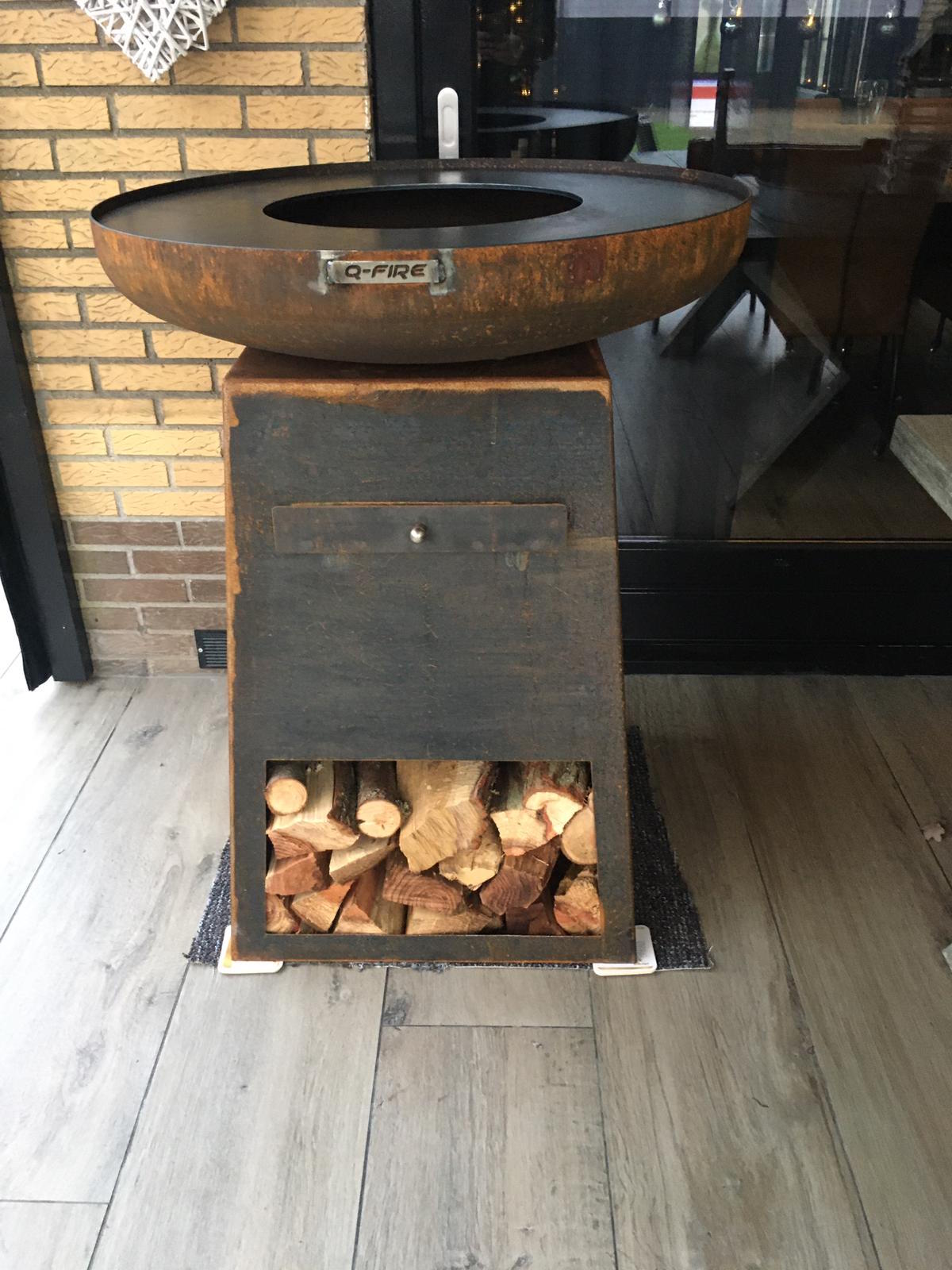 De Q-Fire is zonder de bakplaat te gebruiken als terrashaard door de 80 cm brede vuurschaal te vullen met hout. Als je de bakplaat er vervolgens op legt ontstaat er ineens de mogelijkheid tot grillen en bakken in verschillende temperatuurzones. Met de warmte van je terrashaard maak je de mooiste gerechten terwijl je gasten meekijken, of meedoen. “Dat is echt supergezellig, vooral nu met het prachtige zomerweer!” De Q-Fire is snel leverbaar in verschillende uitvoeringen en kleuren. Deze zijn te zien op