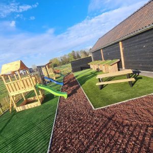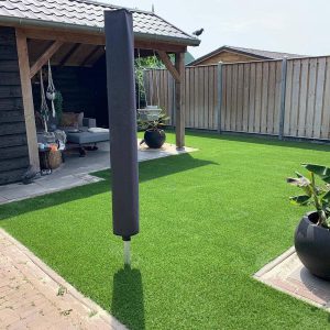 “Deze tuin is gedaan met onze bestseller de Orbis”, laten de kunstgrasspecialisten aan de Graafseweg 870 in Wijchen trots weten. Soms zeggen beelden inderdaad meer dan genoeg. “Vanaf iedere zijde heeft het veld een tropische uitstraling. Dankzij de lange polen en de hoge dichtheid is de mat zowel erg zacht als erg duurzaam. De stevige vezels maken het gras ideaal om op te spelen, of om op te zonnen op een heerlijke zomerdag.”