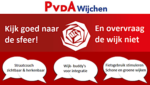 Stimuleert PvdA Wijchen de integratie en de samenhang in de wijk met buddy’s/vrijwilligers die gezinnen ondersteunen bij het invoegen in ons wijknetwerk. Het mes snijdt aan twee kanten; de buddy/vrijwilliger voelt zich gewaardeerd en ontmoet nieuwe buurtgenoten. De nieuwe wijkbewoner wordt sneller in de wijk opgenomen