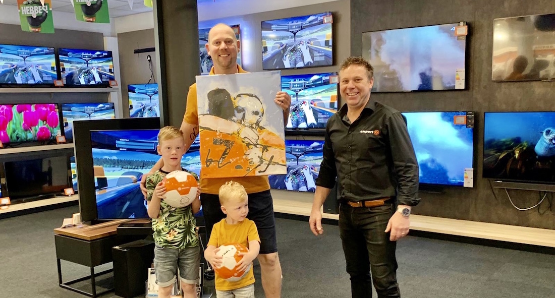 Expert-eigenaar René van den Bogaard gaf de laatste winnaar van de Juichfoto-actie een prachtige originele Herman Brood-gesigneerde zeefdruk met echtheidscertificaat. En je mag wel zeggen dat dat een zeer speciale prijs is!