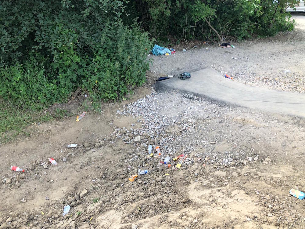 Foto's: zwerfafval bij picknickbank in Oosterpark, op parkeerterrein sportpark De Wijchert, bij parkeerplaats sc Woezik, op Campusterrein en bij entree nieuwe pumptrackbaan Wijchen West.