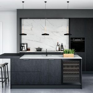 #zwartekeuken #burnedwood #eilandkeuken #dunwerkblad #wijnkast #marmer #wijchen #lentjesdroomkeukens