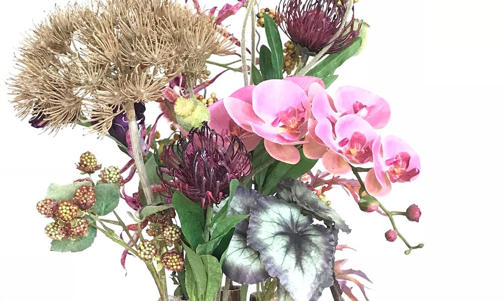 Bij deze cursus zorgen de deelnemers zelf voor bloemen, blad e.d. Alle werkstukken zien er dus ook anders uit, alleen de basis is voor iedereen hetzelfde.