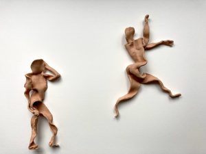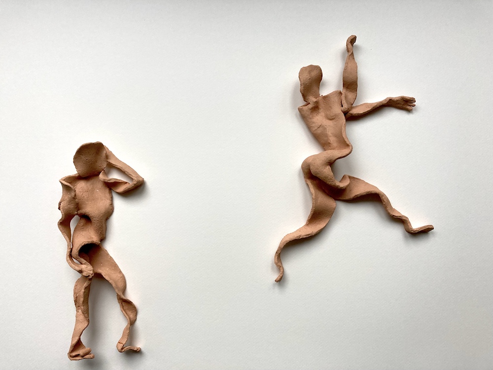 Bij het maken van beelden kiest ze een eigen weg naar abstractie. Van tweedimensionale mensfiguren vormt ze driedimensionale sculpturen. Die sculpturen brengt ze weer terug naar het platte vlak. Zo ontstaan schilderijen gemaakt met natte klei, potloodtekeningen en krijttekeningen, die in de expositie op een bijzondere manier samengaan.