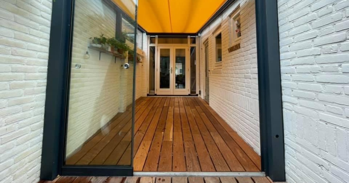 “Wegens een langere levertijd dan verwacht kon deze zonwering niet meer vóór onze vakantie worden geplaatst zoals was afgesproken met de klant.” laat Wesley Welgraven van Verandamakers weten. “Jammer, maar helaas buiten onze macht. Waar we wel iets mee kunnen is de flexibiliteit van onze medewerkers. In hun vakantie hebben ze de zonwering alsnog gemonteerd!