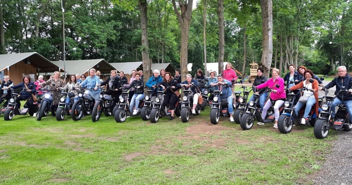 De 40 E-Choppers van Henry en Hannie van de Heuvel aan de Stompendijk bij Hill’s in Bergharen ..