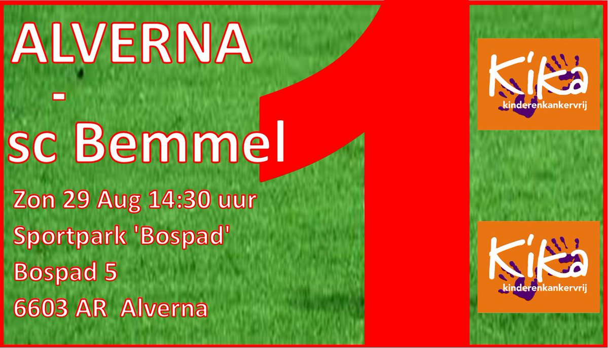 Op zondag 29 augustus speelt sc Alverna een thuiswedstrijd tegen sc Bemmel. Aanvang: 14.30 uur.