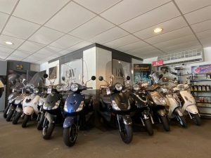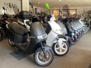 "We hebben onze showroom opnieuw ingericht!”, vertelt Rens Willems aan de Pieter Zeemanstraat 6A in Wijchen. “Het is nu een stuk overzichtelijker geworden, want we hebben onze motoren naar een andere ruimte verplaatst. We moesten plaats maken voor de e-scooters want die zijn in opkomst!”