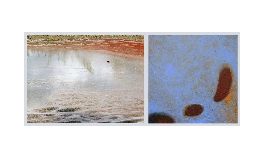Ria Tharner is de rivier de leidraad.Haar foto’s laten verstilde impressies zien van vondsten in en op het water. Raadselachtige vormen en kleuren zetten de kijker op het verkeerde been, omdat alles lijkt op alles - behalve op het voor de hand liggende. Reflecties en werelden vallen samen in een ’frame’ .