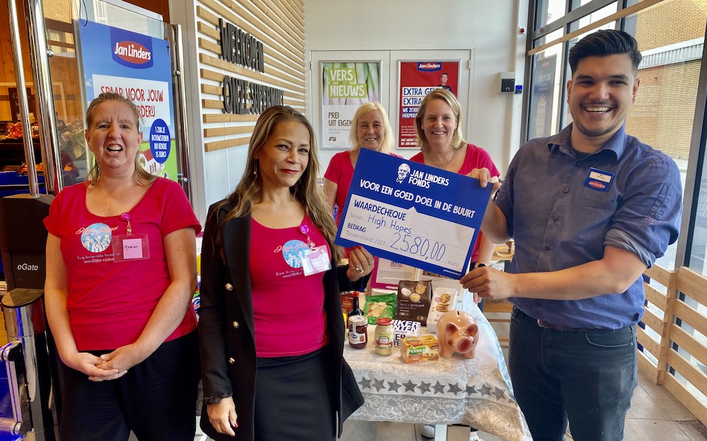 Sinds januari 2021 is de stichting het goede doel van het Jan Linders Fonds, waarbij onze acties die veelal samengaan met de supermarktketen, voor opbrengsten zorgen die nog eens extra beloond worden door het fonds. Spelregels hierover kunt u vinden op hun website en wij vermelden ze ook regelmatig op onze Facebookpagina. Het eerste half jaar heeft de Stichting samen met Jan Linders Wijchen heel wat leuke acties georganiseerd, waardoor we afgelopen vrijdag een mooie cheque in ontvangst mochten nemen van maar liefst €2580.