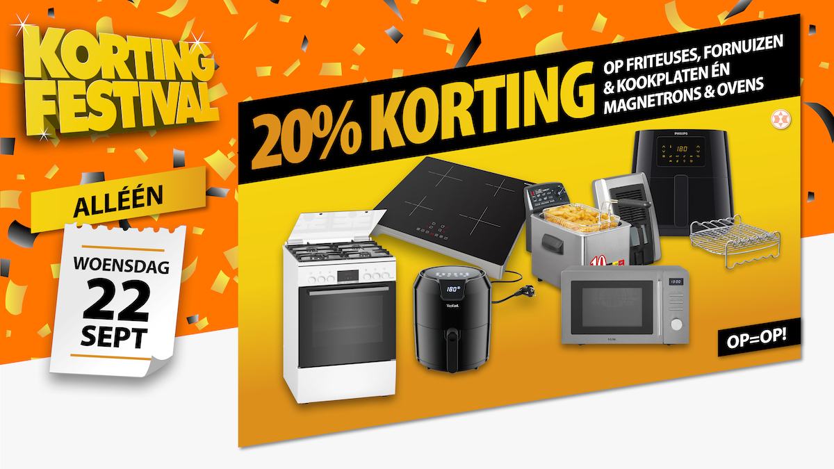 Expert Wijchen heeft natuurlijk altijd de scherpste prijzen, maar alléén op woensdag 22 september: 20% korting op friteuses, fornuizen & kookplaten én magnetrons & ovens! Op = op.