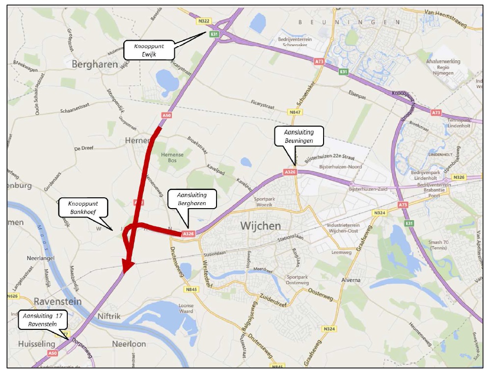 Eerder is naar aanleiding van het fileprobleem in overleg met Rijkswaterstaat, provincie Gelderland en de gemeente Wijchen, de situatie geanalyseerd. Op basis van de analyse wordt geadviseerd om te verkennen of een verlenging van de invoegstrook van de A326, in combinatie met een doorgetrokken rijstrookscheiding, op korte termijn uitgevoerd kan worden. Voor de korte termijn heeft deze investering meerwaarde, maar is onvoldoende toekomstvast.