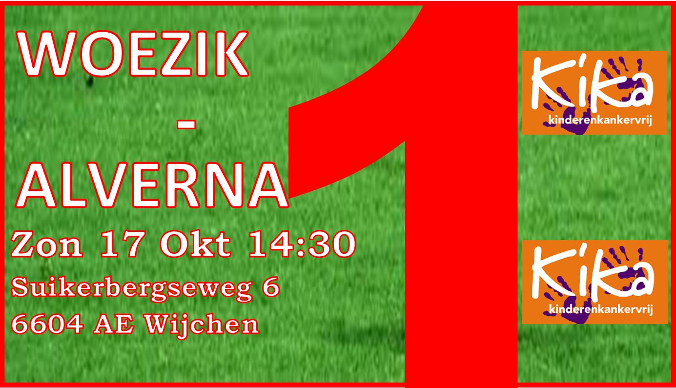 Het is de vierde wedstrijd in deze nog jonge competitie, Woezik verzamelde vijf punten, middels een overwinning en twee gelijke spelen. Alverna heeft zes punten door overwinningen op NEC en Berghem, afgelopen zondag werd verloren van HVCH. We hopen dat de ploeg deze kater van zich af kan spelen met een overwinning op Woezik, dit zal in ieder geval moeten zonder Aleksander Lejic die met een hamstringblessure zal moeten toekijken. Ook Mouctar Jalloh is er niet bij, hij is herstellende van een schouderblessure. Julian Willems heeft weer volledig meegetraind, of dat voldoende is voor een basisplaats is nog even afwachten hoe coach Zoran Borojevic de poppetjes neerzet.