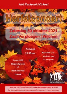 HKO heeft de afgelopen anderhalf jaar haar fans kunnen verblijden met digitale optredens. Toch is het orkest blij dat er weer een echt optreden gegeven kan worden mét livepubliek. Daarom geeft HKO zaterdagavond 30 oktober een kleurrijk herfstconcert. De avond begint met optredens van Young HKO en de Slagwerkgroep. Daarna neemt HKO o.l.v. Arlette Zwaans het publiek mee naar de bergen in Terra di Montagne en het eiland Menorca in Island of Light. De bekende hits van Queen en Genesis komen voorbij in Symphonic Rock en de avond wordt swingend afgesloten met On Broadway en Aretha!